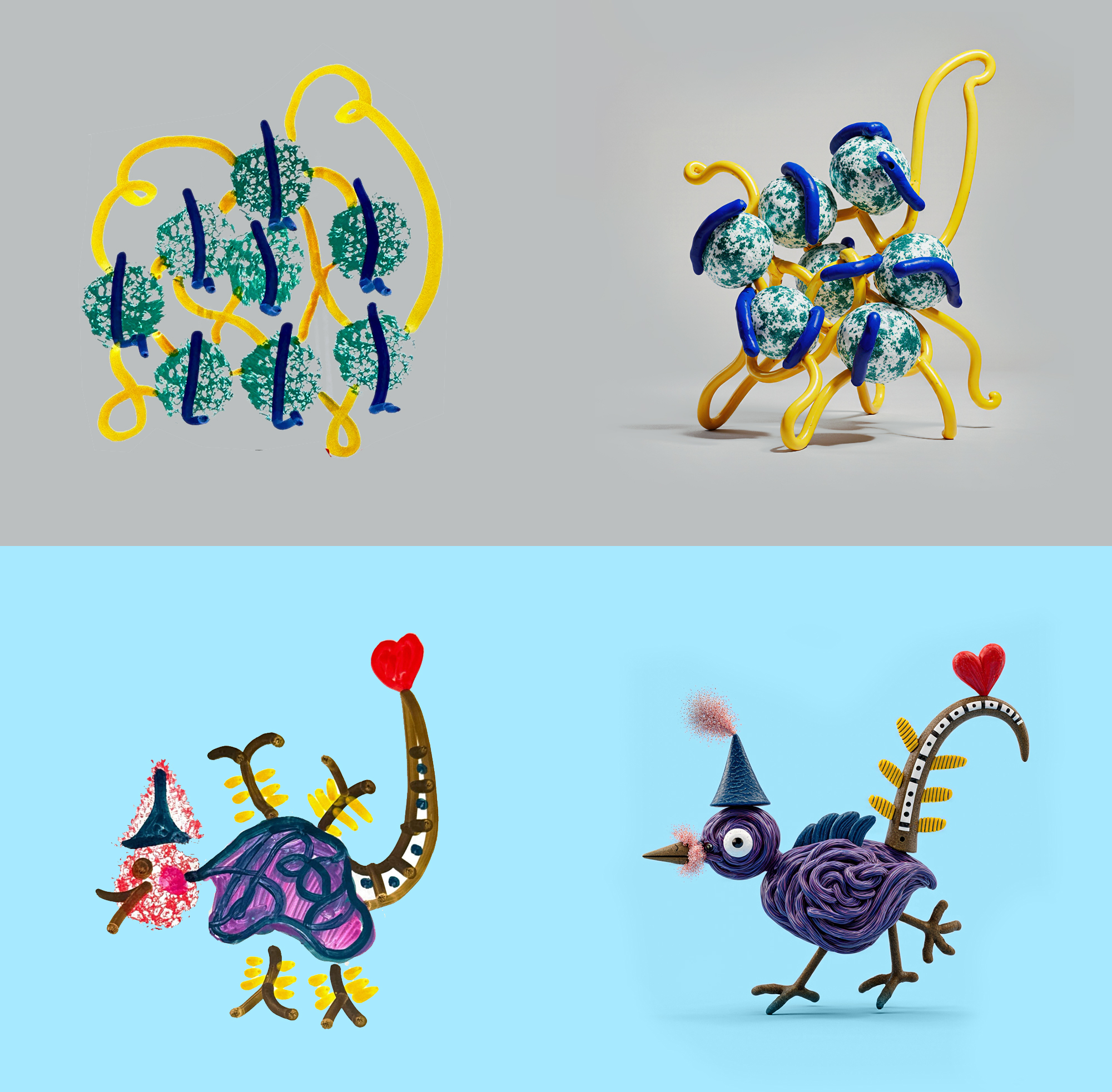 We created a motion graphic showcasing AI transformation of daily objects into future goods. The items in exhibition - chair, knot, can & racket keep shapeshifting to become imaginative things with the power of AI and idea from public.