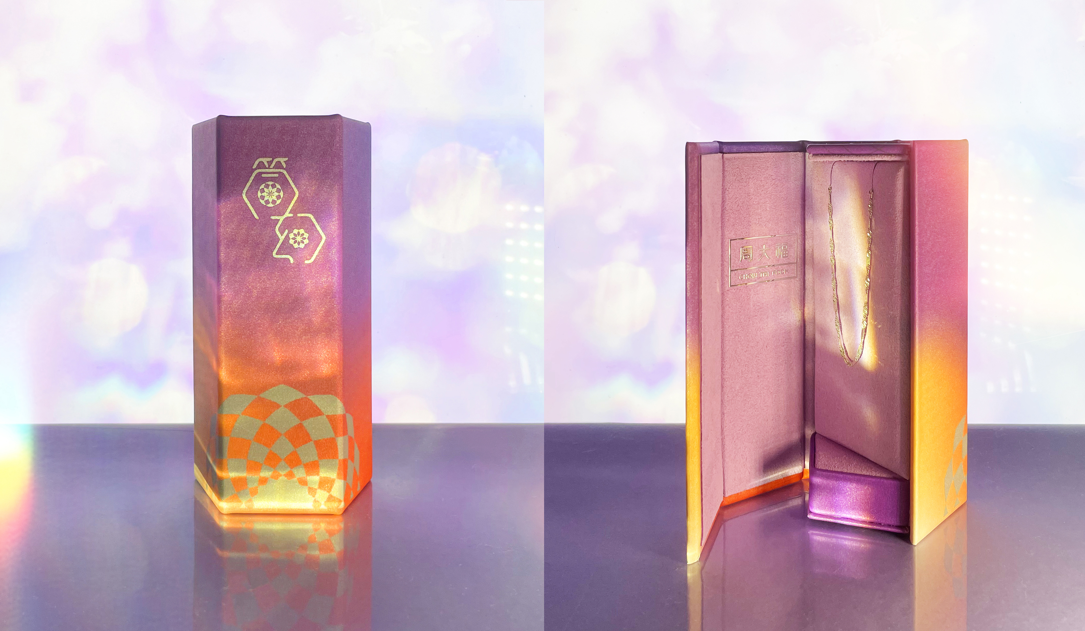 Kalos is an exclusive jewellery series by Chow Tai Fook Hong Kong in 2021. The jewellery is inspired by kaleidoscope presenting a fasinating childhood memory. With the concept, the package combines the functionality of long-lasting storage and interesting experience of kaleidoscope toy.